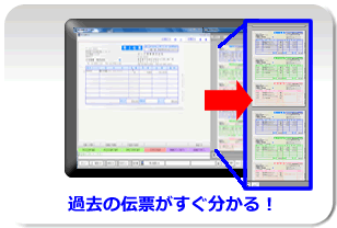 伝票作成時に過去の伝票を画面サイドに表示することが出来ます。時間をかけて過去の伝票を探す時間を削減できます。作業時間の短縮に繋がり、事務の効率もアップします。