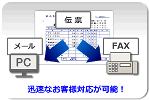 伝票発行と同時に、伝票データをメールやFAXで送信することが可能です。伝票を印刷して郵送するより早いので便利です。伝票用紙や切手代コストも抑えられます。