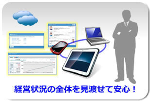 カシオのクラウドを利用した経営サポートサービスです。スマホ等を使って、カシオのポータルサイト「社長の部屋」へアクセスすると、販売管理データを元にした売れ筋商品や、得意先の売上情報などを知ることが可能。外出先でも常に、経営状態を把握できます。