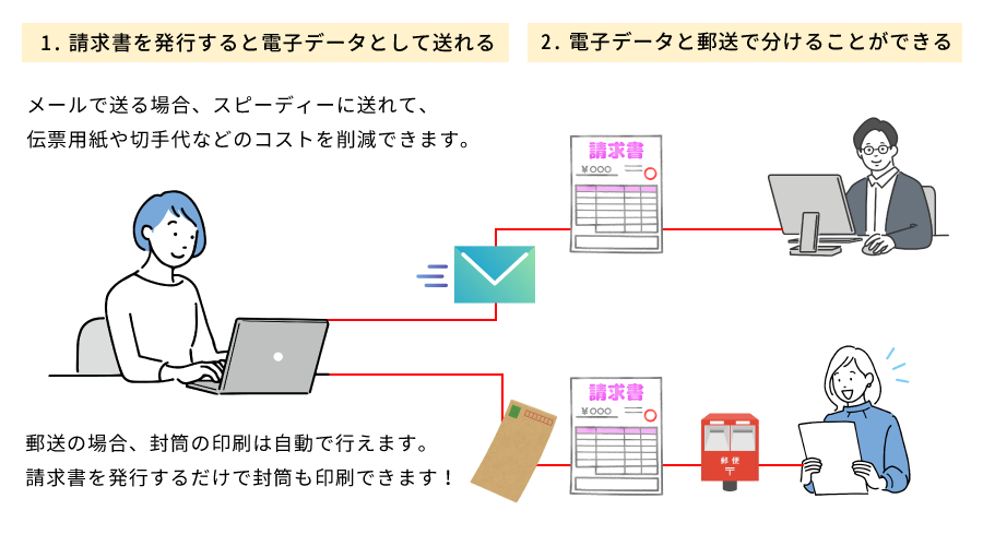 伝票の印刷、封入、郵送手続きの手間が省けます。