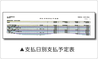 担当者別・仕入先別の支払予定表や支払予定確認表をプレビュー画面で確認、又は帳票として印刷し、資金面の参考資料として利用することができます。個別に支払サイトを設定できる他、6パターンまで共通支払いサイトを設定できます。