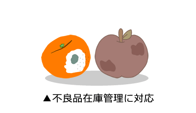 何らかの原因で不良品となってしまった青果を良品とは区別して管理することが可能。間違ってしまった場合でも、不良品在庫から良品在庫に移すこともできます。また、出庫伝票から不良品を破棄する操作もでき、出庫理由を明確にできます。在庫管理システムは不良品の在庫管理も対応できます