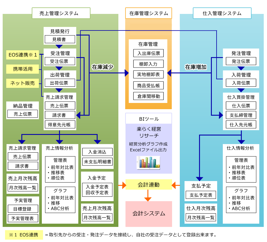 EOS連携業務 | 受信した発注データを自社の受注・売上データとして接続可能 |
