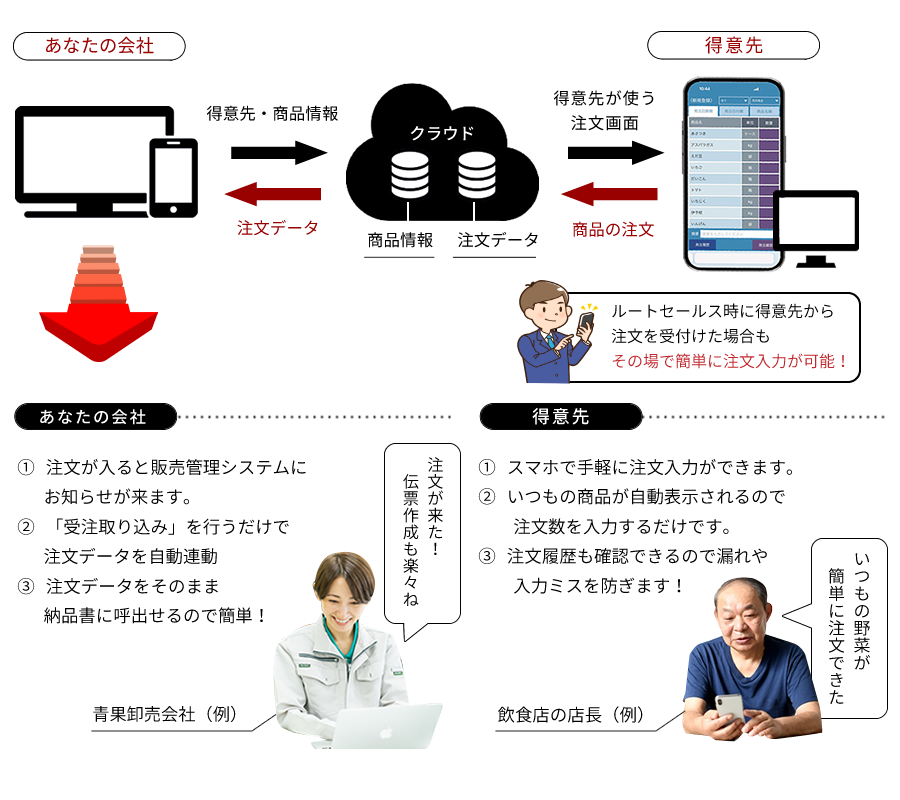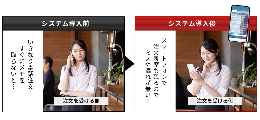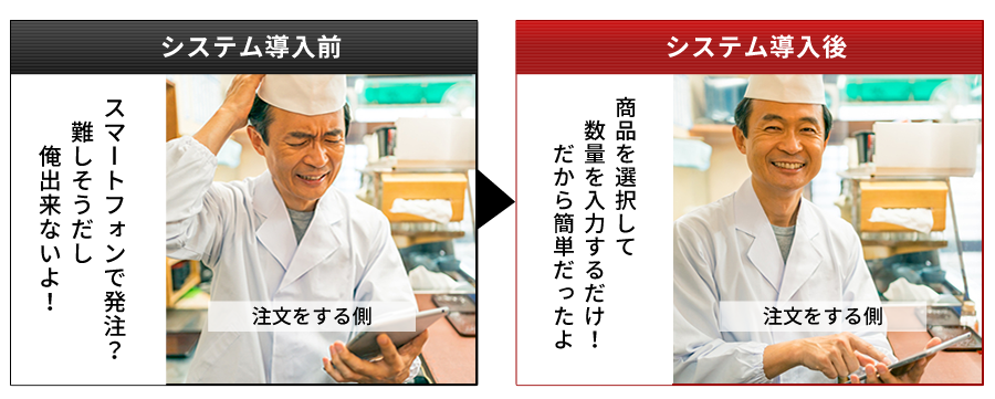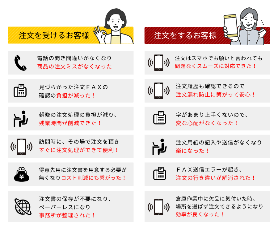 食品業様と得意先様 双方で嬉しい声をいただきました電話やFAXによる人的ミスがなくなり効率的になります